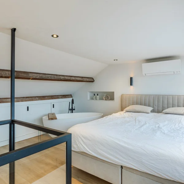 De zolder werd voorheen niet gebruikt en had beperkte ruimte. Met een extra kind op komst hebben we de ongebruikte zolder omgetoverd tot een moderne slaapkamer met ensuite badkamer. Hiervoor plaatsten we een dakkapel, vervingen het dak, installeerden een nieuwe trap en werkten alles volledig modern en stijlvol af.